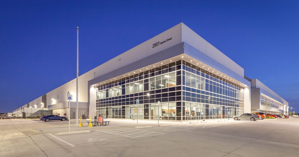 Gateway Business Park: Our Architecture practice was behind the design of this 86-acre speculative industrial development, which includes five tilt-wall facilities totaling more than 1.4 million sf.